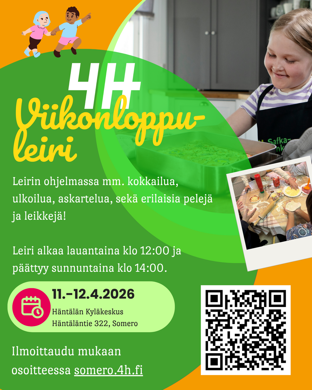 Tervetuloa mukaan viikonloppuleirille Someron kyläkeskukseen, Häntälään 11.-12.4.2026!