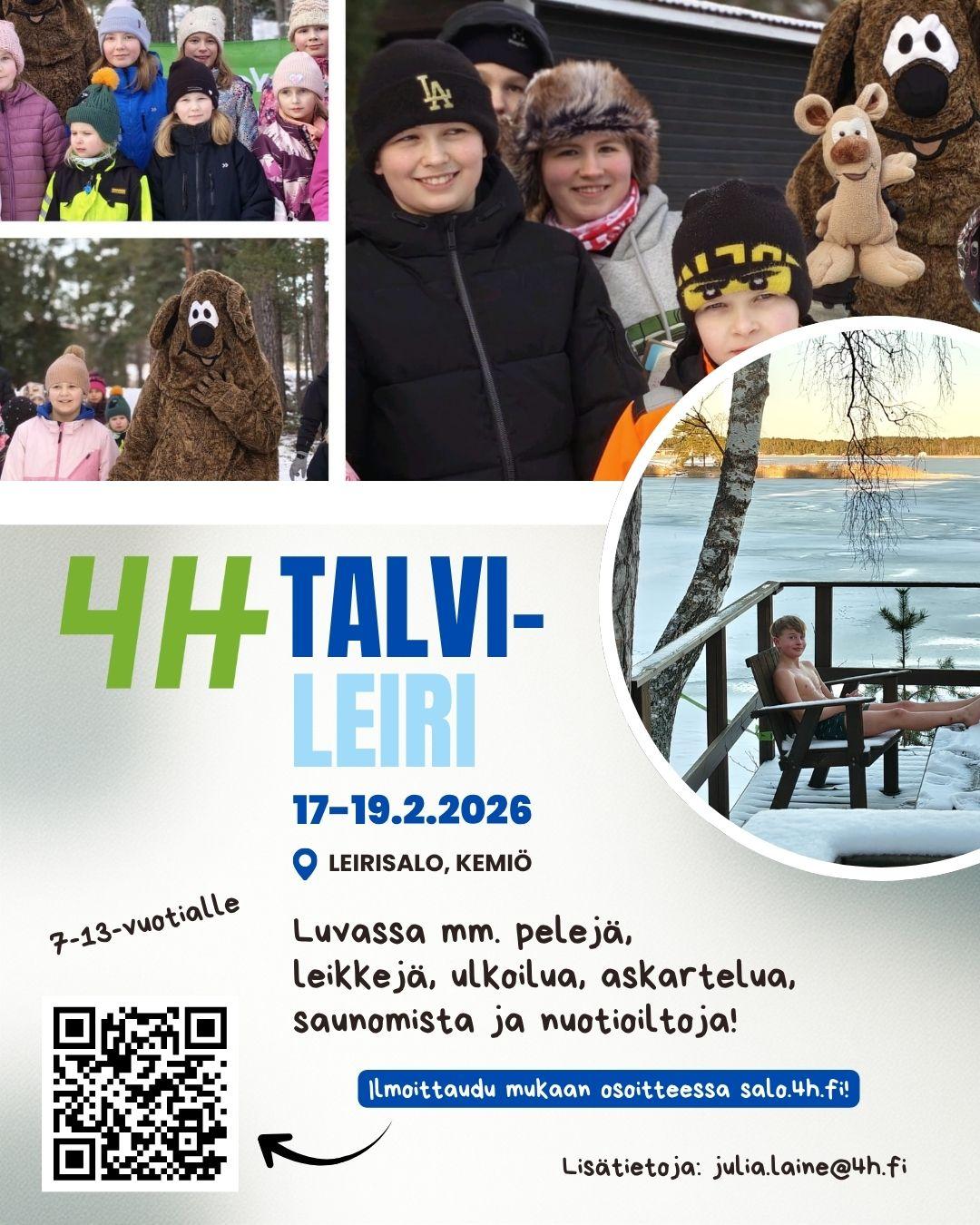 Leiri alkaa tiistaina 17.2. klo 12.00 (paikalle voi tulla klo 10 lähtien) ja päättyy torstaina 19.2. klo 17.00 (jolloin leiriläiset on haettava kotiin).